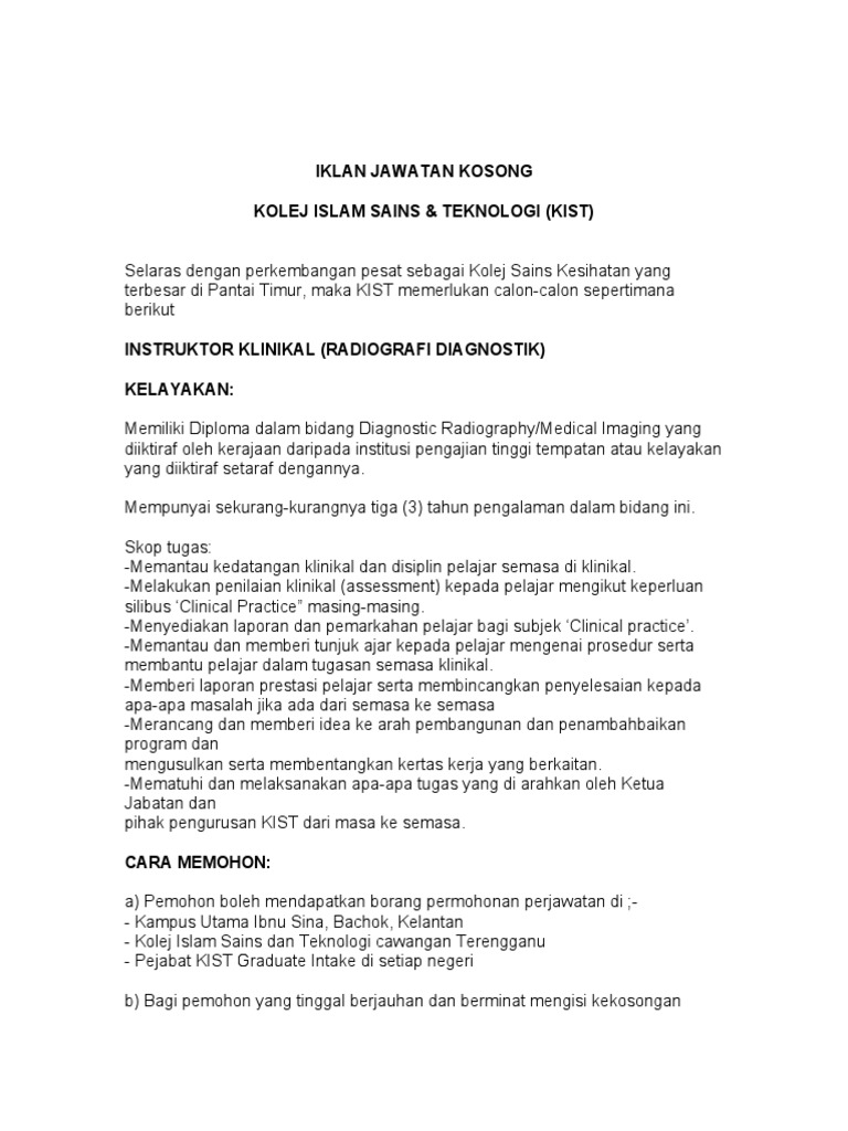 Jawatan Kosong Kolej Islam Sains Dan Teknologi Kist 10 Februari 2012 Jawatan Kosong Kerajaan Swasta Terkini Malaysia 2020 2021