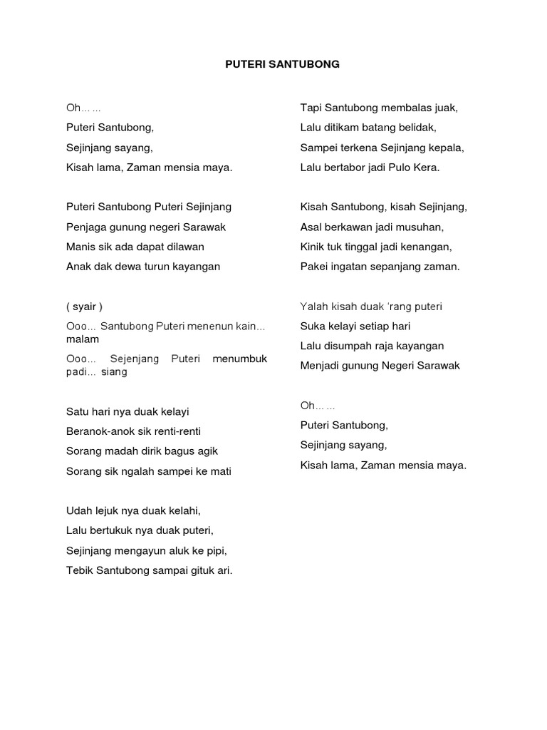 Makna Disebalik Lirik Lagu Puteri Santubong Puteri Sejinjang Bakat Lagu Lirik Hiburan Forum Cari Infonet