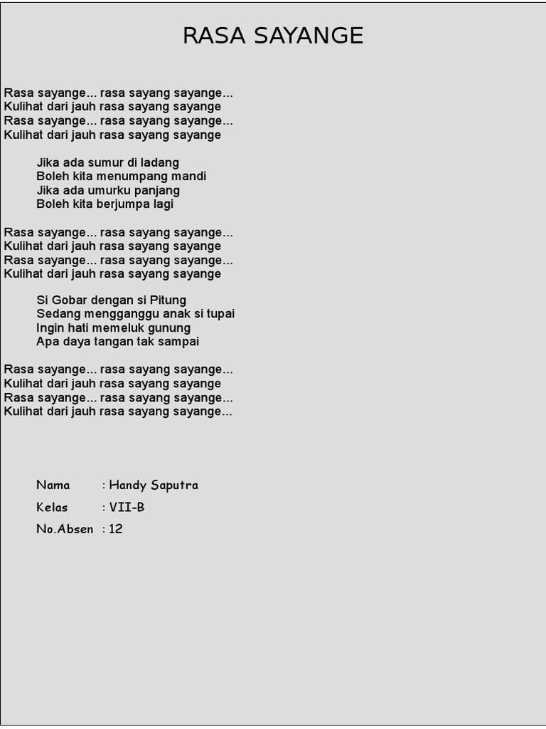 Lyric Chord Rasa Sayang Sayange Indonesia Song Pdf Document