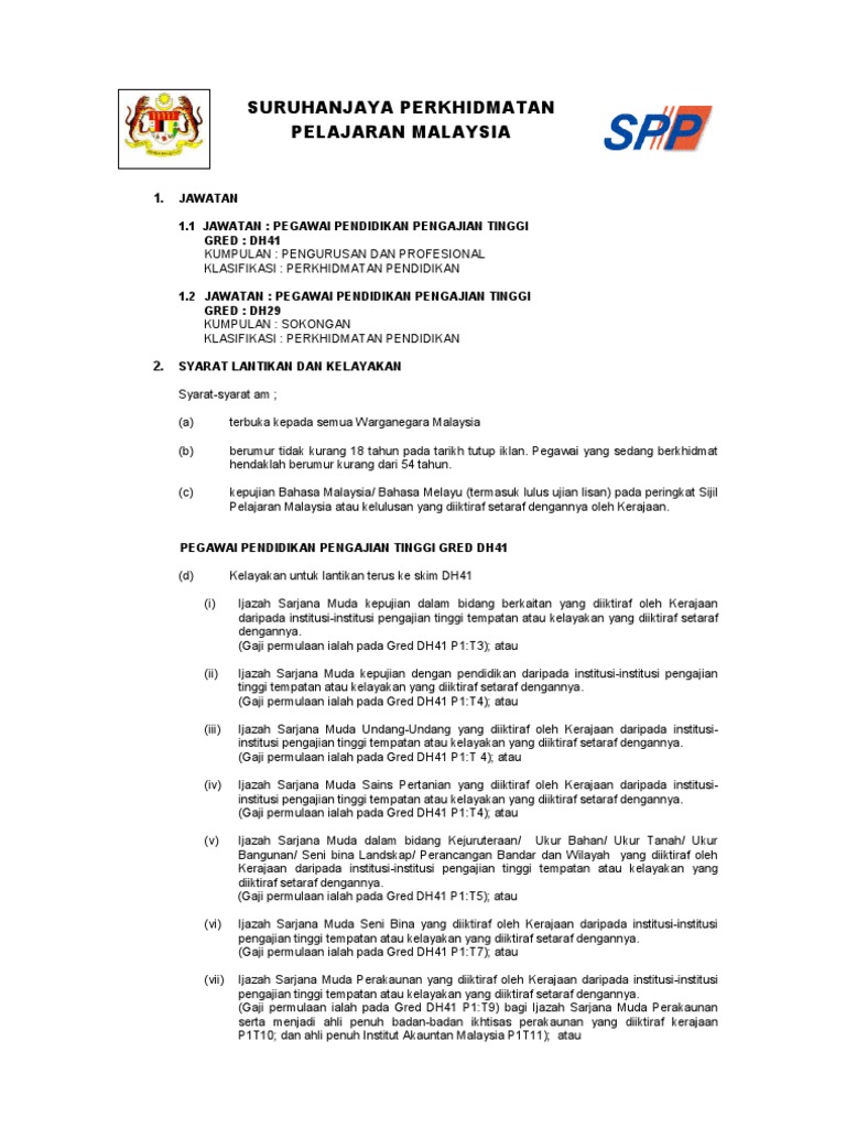 Spp Malaysia On Twitter Ralat Disertakan Bidang Dan Kelayakan Memohon Hebahan Iklan Pengambilan Jawatan Pegawai Pendidikan Pengajian Tinggi Gred Dh41 Dan Gred Dh29 Bagi Penempatan Di Semenanjung Permohonan Hendaklah Dikemukakan Secara Dalam