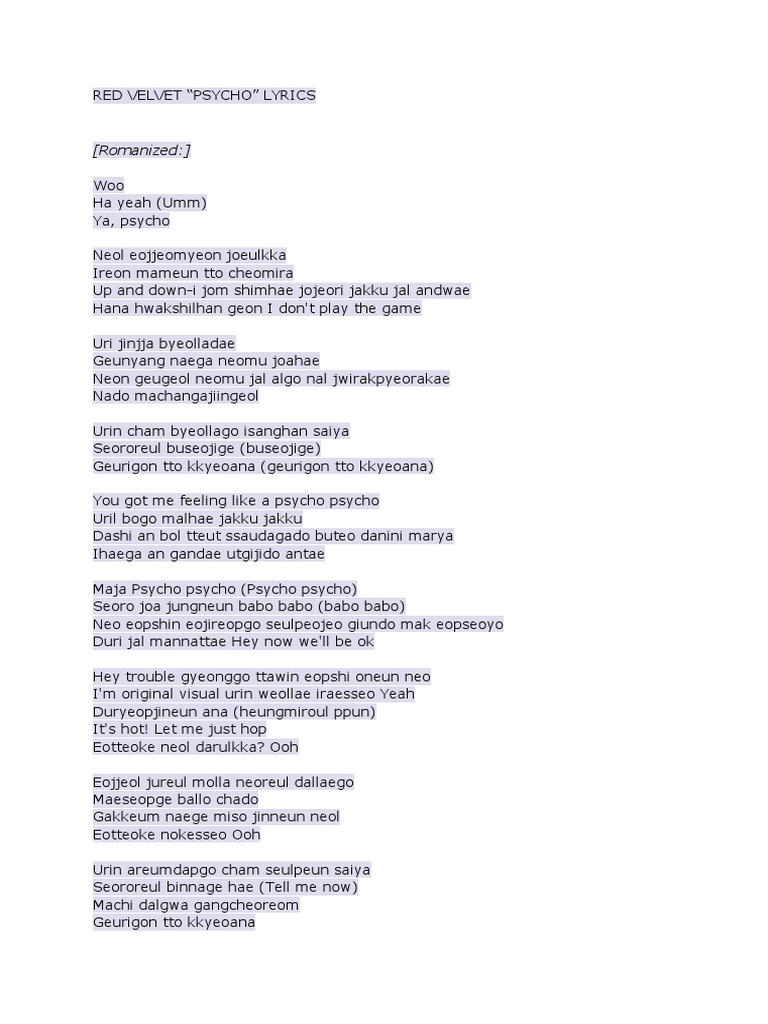 Red Velvet Lyrics Psycho Wattpad